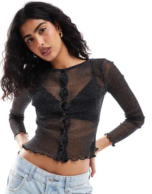 ASOS DESIGN - Gennemsigtig og krympet sort cardigan i glitrende mesh