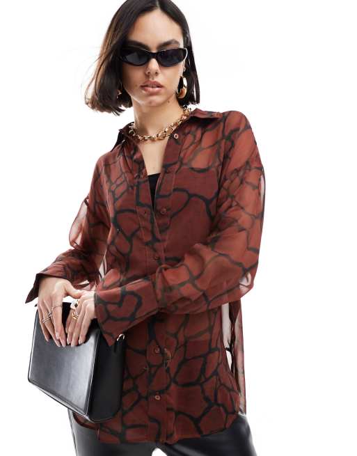 ASOS DESIGN - Gennemsigtig rød longline-skjorte med print