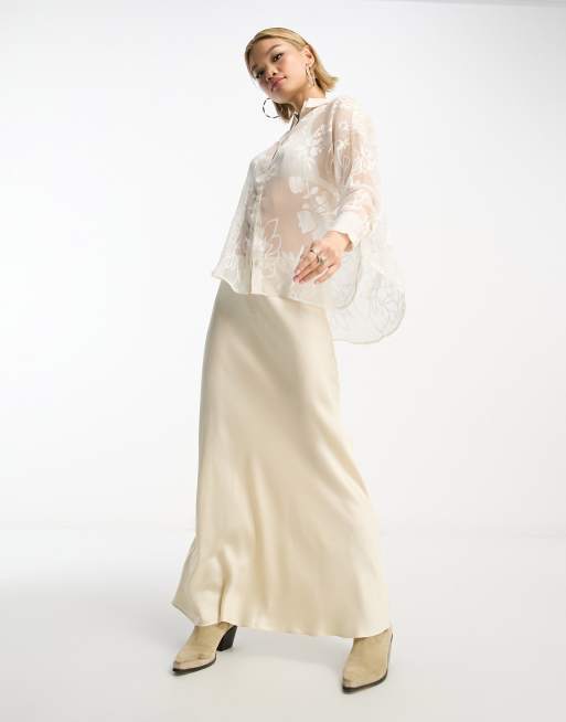 ASOS DESIGN - Gennemsigtig skjorte i cremehvid med blomstermønster