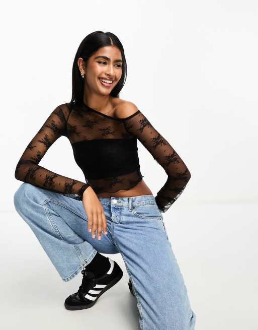 ASOS DESIGN - Gennemsigtig sort asymmetrisk top