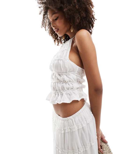 ASOS DESIGN - Gennemsigtig top med halterneck, lagdelt detalje og rynker - Del af sæt