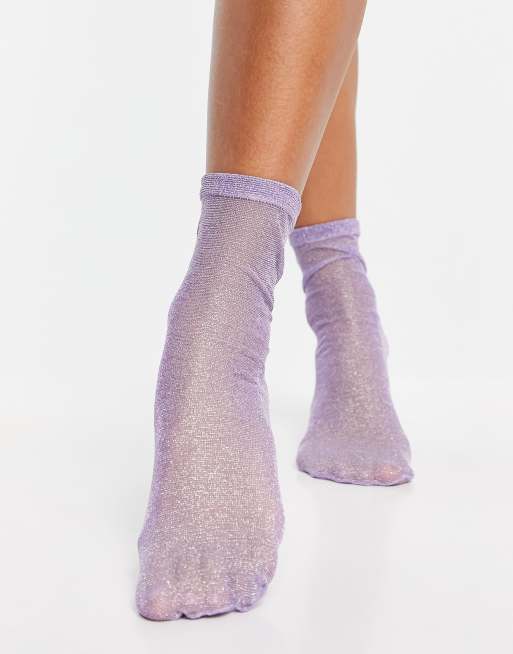 ASOS DESIGN - Gennemsigtige ankelsokker i lyslilla med glimmer
