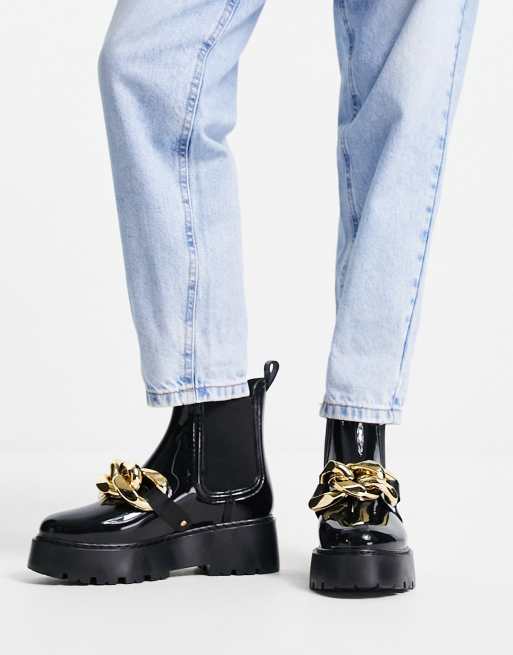 ASOS DESIGN - Giselle - Sort gummistøvler med chunky kæde