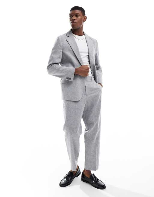 ASOS DESIGN - Grå afslappede habitbukser i hør- og bomuldsblanding i tapered pasform