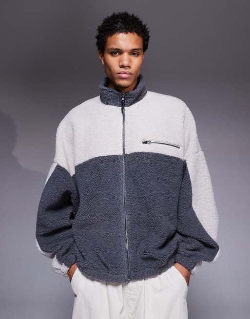 ASOS DESIGN - Grå afslappet sweatshirt med ståkrave og gennemgående lynlås i imiteret lammeskind