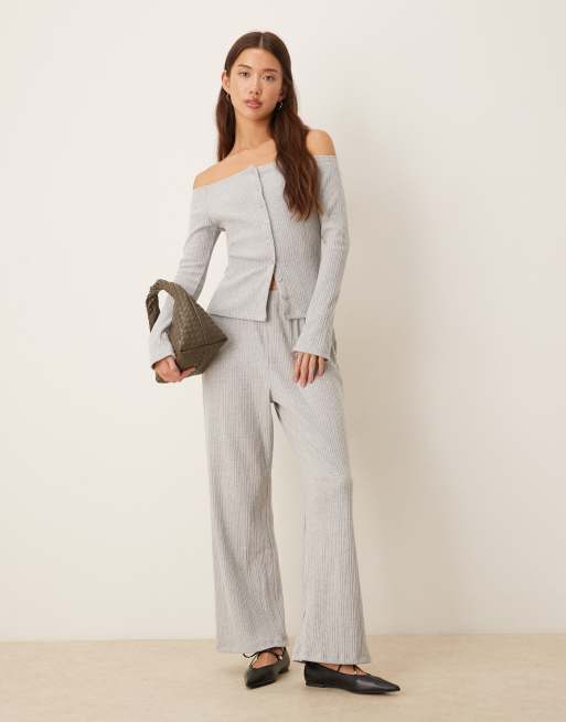 ASOS DESIGN - Grå bukser med brede ben i superblødt blandet ribstrik