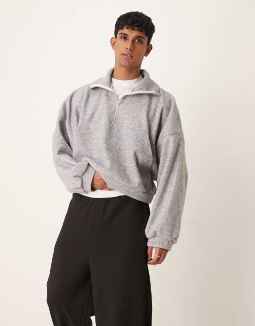 ASOS DESIGN - Grå ekstremt oversized cropped trøje med ståkrave i kraftig børstet fleece