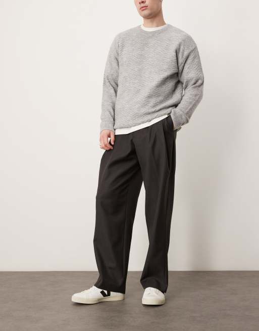 ASOS DESIGN - Grå elegante bukser med vide ben og dybe plisseringer