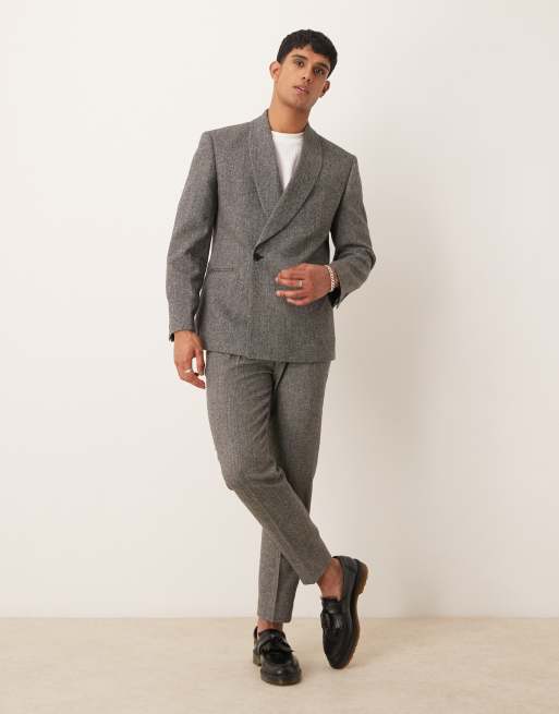 ASOS DESIGN - Grå habitbukser med indsnævrede ben og sildebensmønster