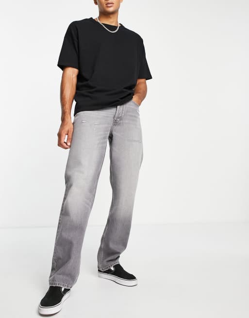 ASOS DESIGN - Grå jeans med lige ben og flossede kanter