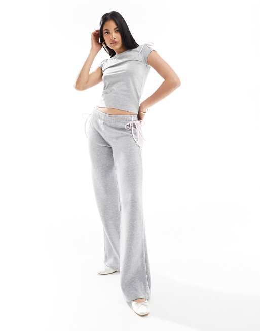 ASOS DESIGN - Grå joggingbukser med kontrastsløjfer - Del af sæt