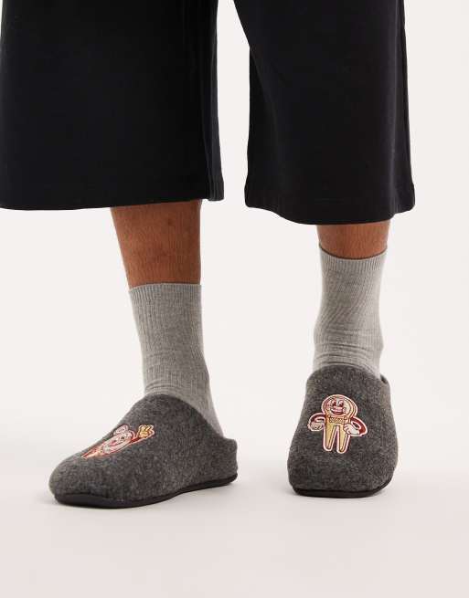 ASOS DESIGN - Grå mule-hjemmesko i filt med golfgrafik