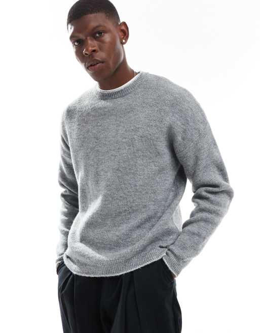 ASOS DESIGN - Grå og afslappet trøje i lodden strik med kontrastfarvede tungesting