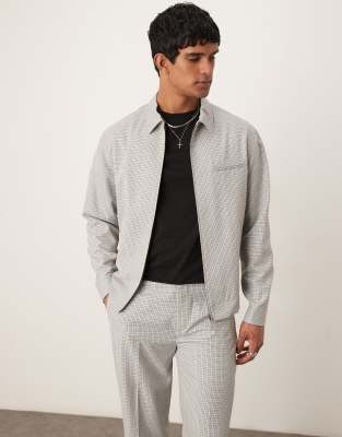 ASOS DESIGN - Grå og elegant Harrington-jakke med mikrotern - Del af sæt