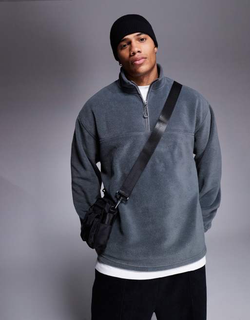 ASOS DESIGN - Grå og oversized sweatshirt i fleece med kvart lynlås