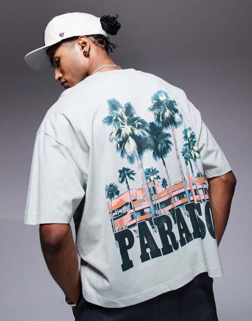 ASOS DESIGN - Grå oversized firkantet T-shirt med brystprint