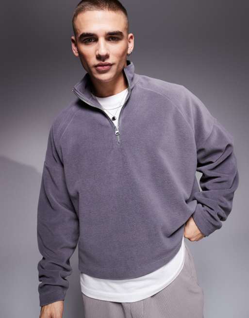 ASOS DESIGN - Grå oversized sweatshirt i fleece med kvart lynlås