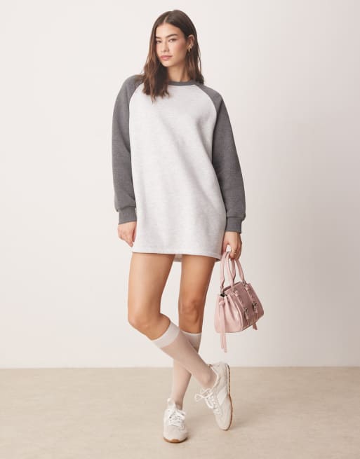 ASOS DESIGN - Grå raglan-minikjole i sweatshirt-stof