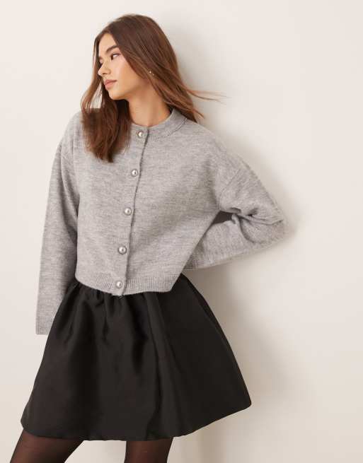 ASOS DESIGN - Grå strikket cardigan med rund hals og buede knapper