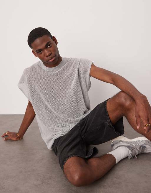 ASOS DESIGN - Grå strikket oversized overdel med sænkede skuldre