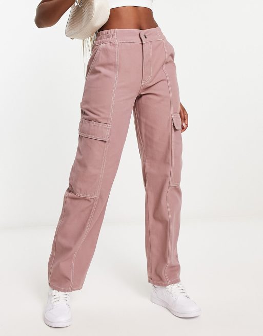 ASOS DESIGN - Gråbrune cargobukser med sømdetalje og kontrastsyning