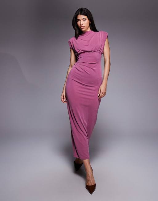ASOS DESIGN - Grålilla midikjole med rynkede skulderpuder