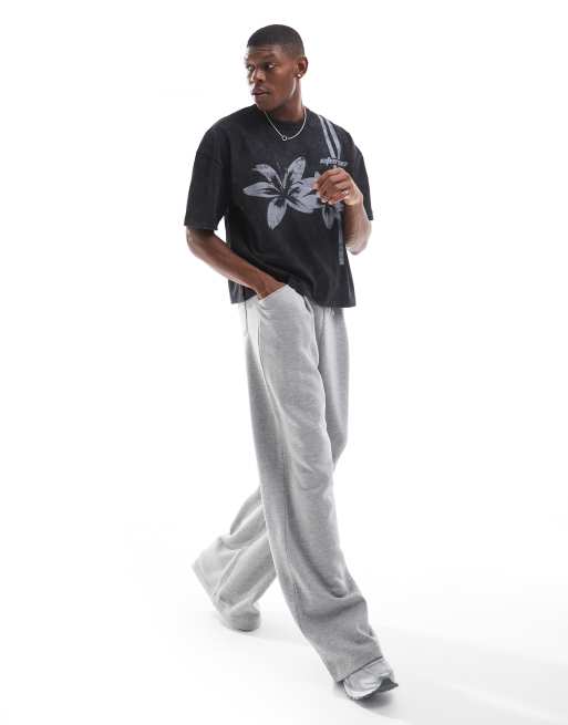 ASOS DESIGN - Gråmelerede joggingbukser med brede ben og plisseringer