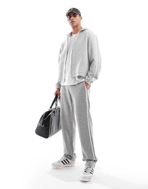 ASOS DESIGN - Gråmelerede joggingbukser med lige ben og teksturerede sidestriber