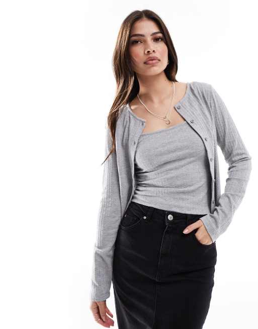 ASOS DESIGN - Gråmeleret 2-i-1-sæt med cami-top og cardigan