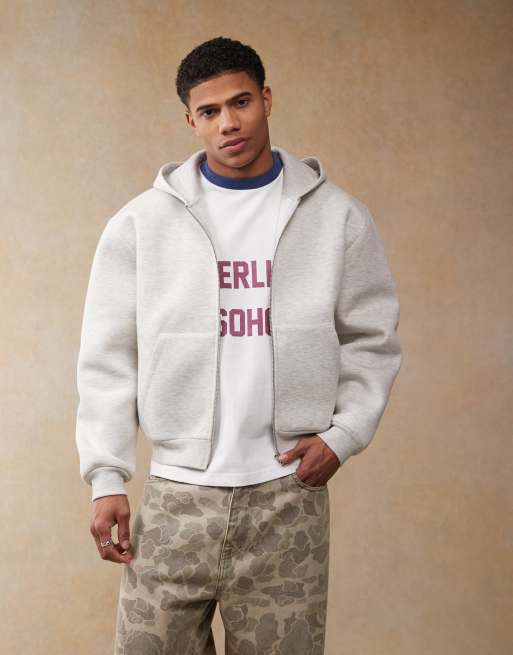 ASOS DESIGN - Gråmeleret afslappet firkantet hættetrøje i kraftigt scuba-lignende stof med lynlås