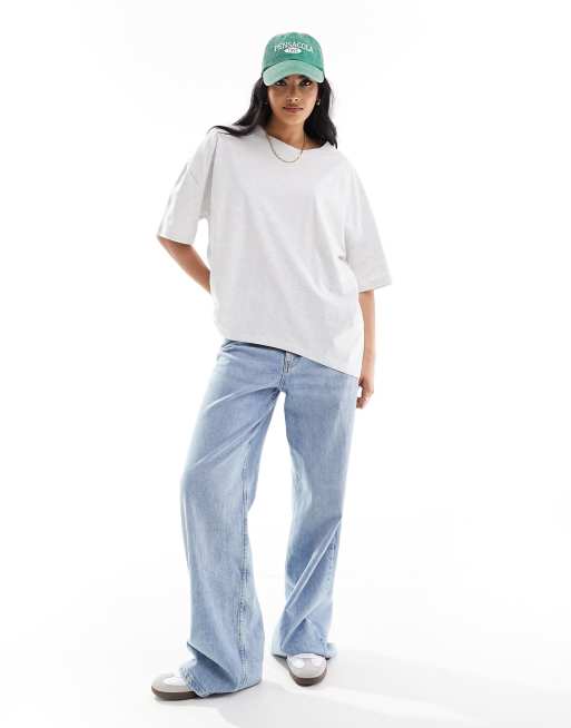 ASOS DESIGN - Gråmeleret og oversized T-shirt med længere kant bagpå