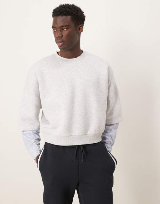 ASOS DESIGN - Gråmeleret oversized cropped sweatshirt med sænkede skuldre og skjorteærmer