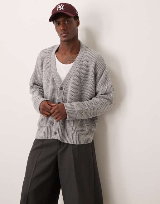 ASOS DESIGN - Gråmeleret, super-oversized og firkantet cardigan i ribstrik