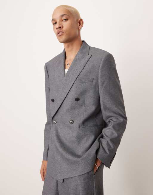 ASOS DESIGN - Gråt dobbeltradet habitsæt med tekstur i regular fit
