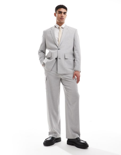 ASOS DESIGN - Gråt jakkesæt i mikrotekstur