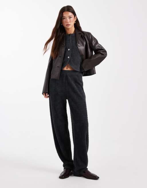 ASOS DESIGN - Gråt sæt med cardigan med lange ærmer og bukser med tøndeformede ben i vamset tekstur