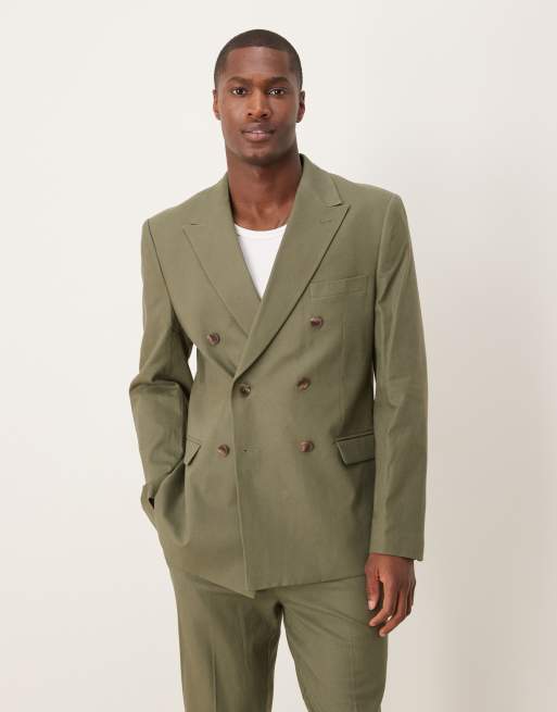 ASOS DESIGN - Grøn dobbeltradet slim-habitjakke i hørblanding