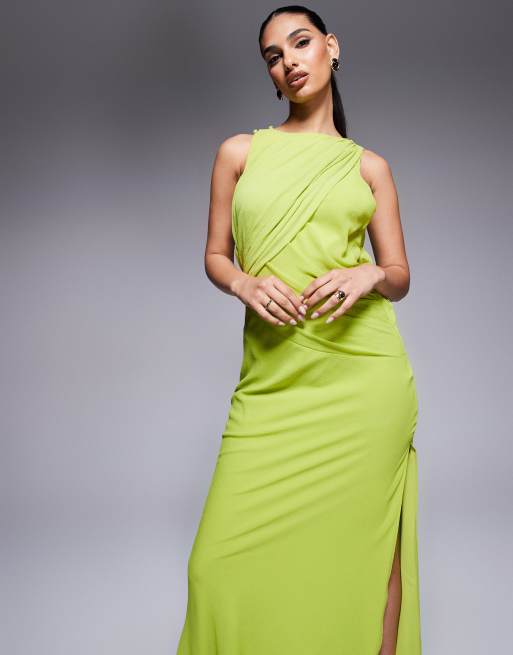 ASOS DESIGN - Grøn maxikjole med skråsnit og drapering i tekstureret chiffon