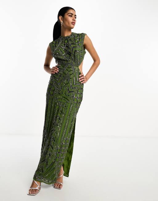 ASOS DESIGN - Grøn maxikjole med udsmykninger og høj hals samt udskæringer i taljen