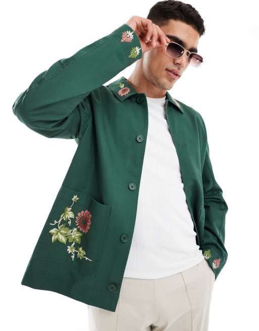 ASOS DESIGN - Grøn og broderet arbejdsjakke
