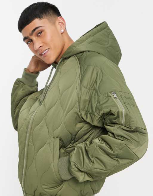 ASOS DESIGN - Grøn oversized bomber-jakke med hætte