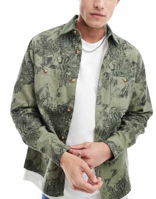 ASOS DESIGN - Grøn overskjorte med blomsterprint og fløjlskrave