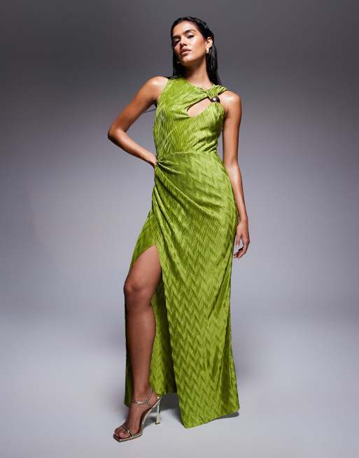 ASOS DESIGN - Grøn ærmeløs maxikjole med drapering, udskæring og kantdetalje
