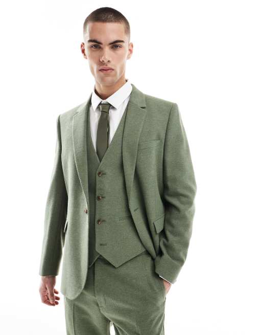 ASOS DESIGN - Grøn smal habitjakke med sildebensmønster i uld