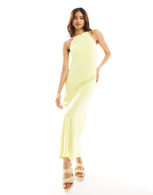 ASOS DESIGN - Grøngul maxi-solkjole i hør med racerhals