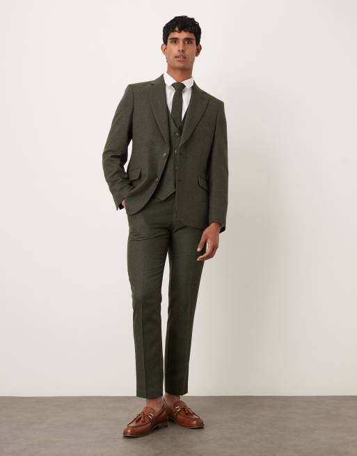 ASOS DESIGN - Grønne smalle habitbukser med mikrotekstur