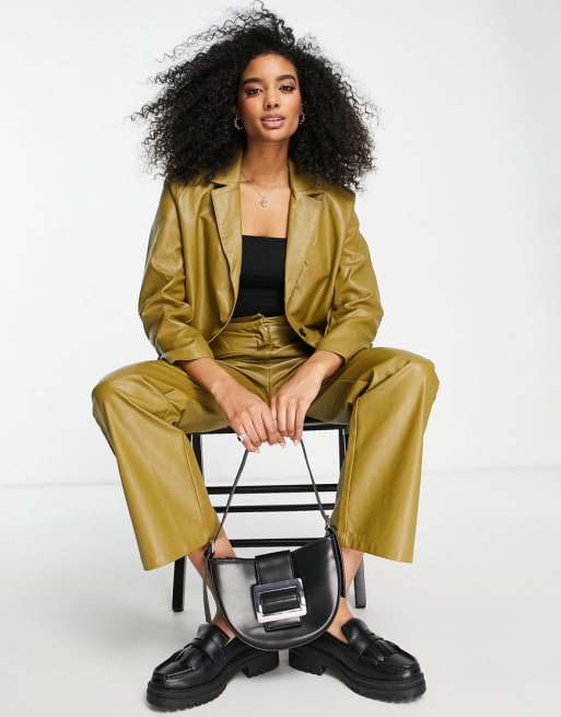 ASOS DESIGN - Grønt jakkesæt i læderlook
