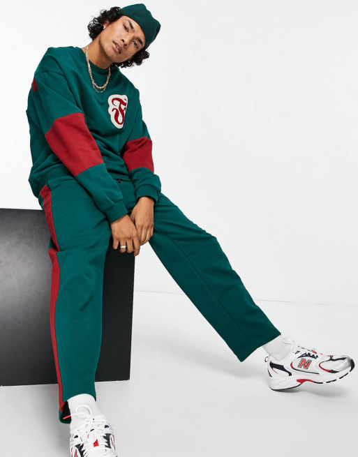 ASOS DESIGN - Grønt oversized sæt med sweatshirt og joggingbukser med broderi