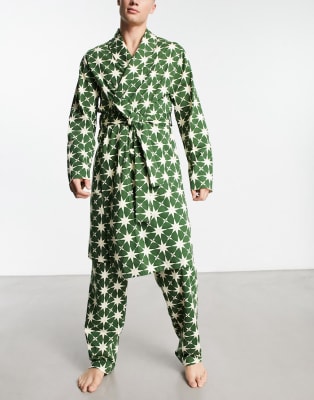 ASOS DESIGN - Grønt sæt med badekåbe og lounge-bukser med stjerneprint