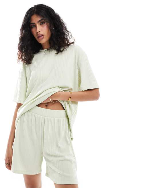 ASOS DESIGN - Grønt sæt med shorts og T-shirt med tekstur